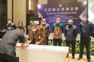 Bali – Direktorat Jenderal Imgrasi gelar Rapat Koordinasi Penyelesaian Permasalahan Tanah milik Direktorat Jenderal Imigrasi di Kab. Sumba Tengah, Nusa Tenggara Timur pada rabu (24/11/21) sampai dengan jum’at (26/11/21). Bertempat di Hotel Anvaya Beach Resort Bali. Kegiatan rapat koordinasi ini dihadiri oleh Kementerian Agraria dan Tata Ruang/Badan Pertanahan Nasional, Kementerian Lingkungan Hidup dan Kehutanan, Kementerian Desa, Pembangunan Daerah, Tertinggal dan Transmigrasi, Kementerian Keuangan, Pemerintah Provinsi Nusa Tenggara Timur, Pemerintah Kabupaten Sumba Tengah, Kantor Wilayah BPN Nusa Tenggara Timur, Kantor Wilayah Kementerian Hukum dan HAM Nusa Tenggara Timur, Kantor Pertanahan Kabupaten Sumba Tengah, Kodam IX/Udayana. Dalam sambutannya, Kepala Bagian Pengelolaan BMN dan Layanan Pengadaan Yuni Santi Nurani mengatakan bahwa Rapat Koordinasi ini adalah untuk menindaklanjuti Laporan Hasil Pemeriksaan Badan Pemeriksa Keuangan Republik Indonesia (BPK R.I.) atas Laporan Keuangan Kementerian Hukum dan HAM Tahun Anggaran 2018. Rakor ini juga bertujuan untuk menyelesaikan permasalahan yang ditemui dalam proses penyelesaian permasalahan tanah milik Direktorat Jenderal Imigrasi di Kabupaten Sumba Tengah Provinsi Nusa Tenggara Timur dengan instansi dan para pihak terkait.